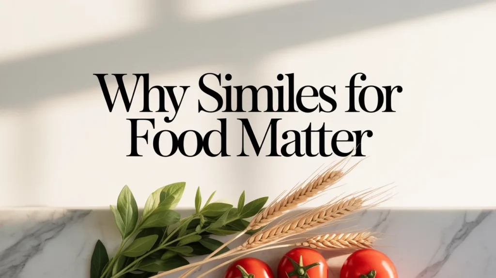Food is more than nourishment — it’s memory, comfort, and culture served on a plate. When we describe food, we often want readers or listeners to taste it through words. That’s where similes for food become essential. Using similes, we can transform a simple description into a sensory experience. Saying “the soup was as warm as a mother’s hug” evokes emotion in a way that plain description cannot.